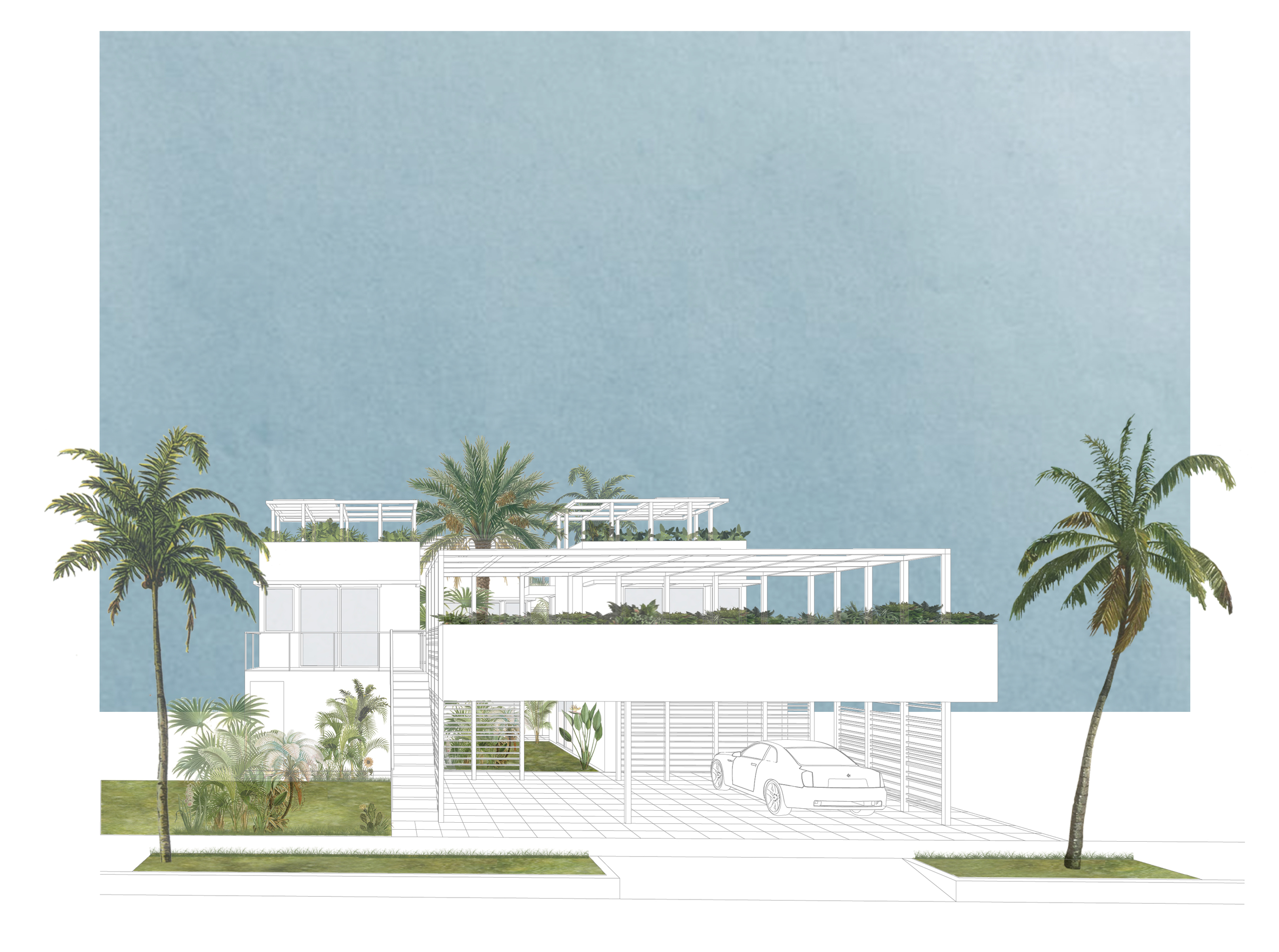 Our entry (and the premise of the competition) shows that with minimal zoning changes, Los Angeles can densify the suburbs and maintain the coherence and stability of its neighborhoods. In addressing the prompt to create housing that is suited to this city, we felt that two related characteristics distinguish Los Angeles from other localities: our mild weather and our legacy of indoor-outdoor living. The city has a number of legendary housing examples that take advantage of this, such as the multi-unit Neutra VDL House and Schindler’s Kings Road House (both now house museums), the courtyard housing Villa Primavera (the setting for the film noir “In a Lonely Place”), and St. Andrews Bungalow Court.