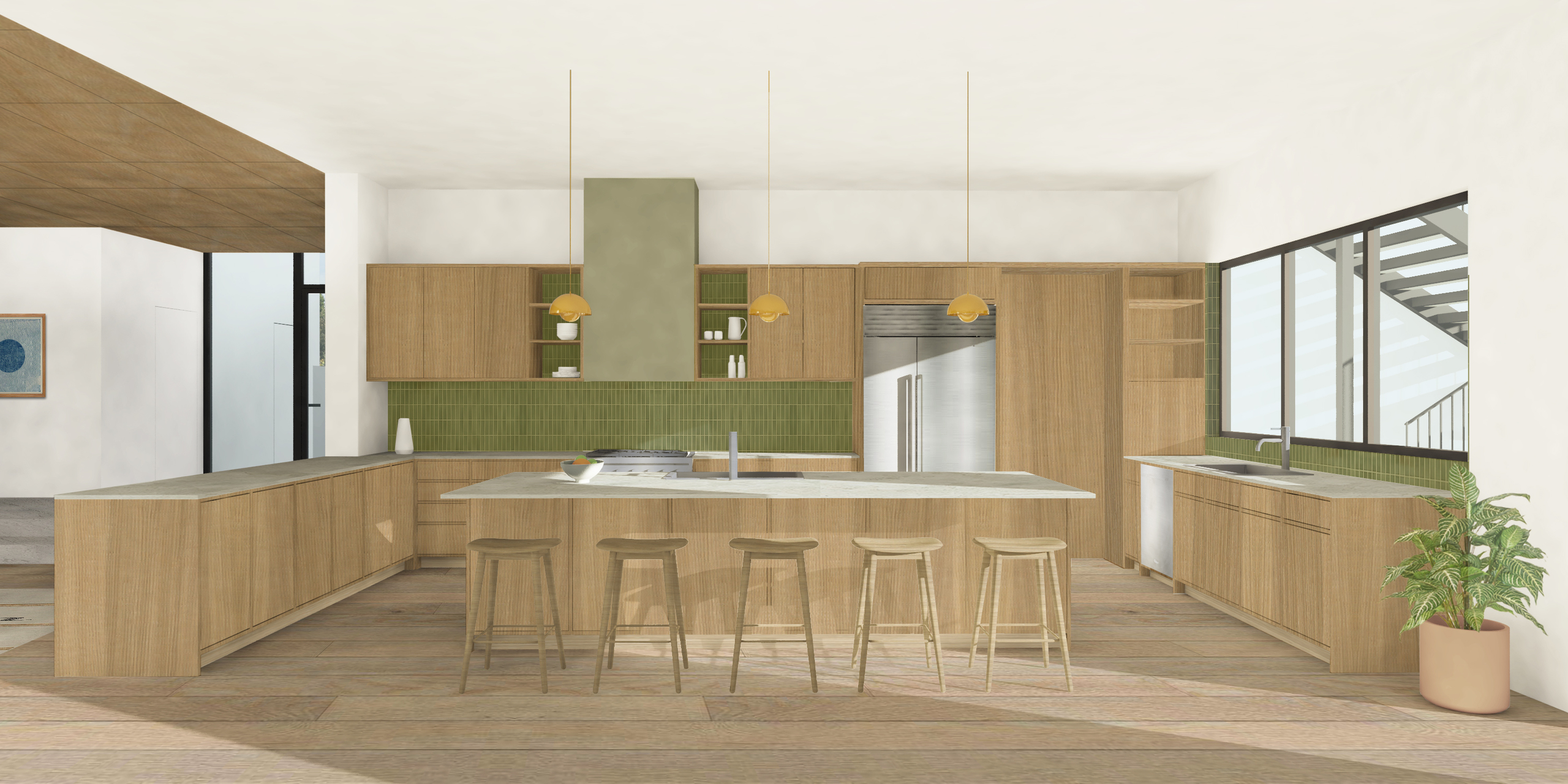 We designed this Malibu compound for an extended family that lost their home in the Woolsey fire. Their new house is organized into a series of pavilions with intermittent exterior courts and pocket gardens connected via a long linear gallery. Large windows shaded by a steel trellis face South, opening up views to a native meadow and the ocean beyond. This orientation also allows the house to be passively cooled and ensures that the house meets California’s 2020 Zero Net Energy requirements. Below the main house is a garden house to accommodate larger family gatherings.