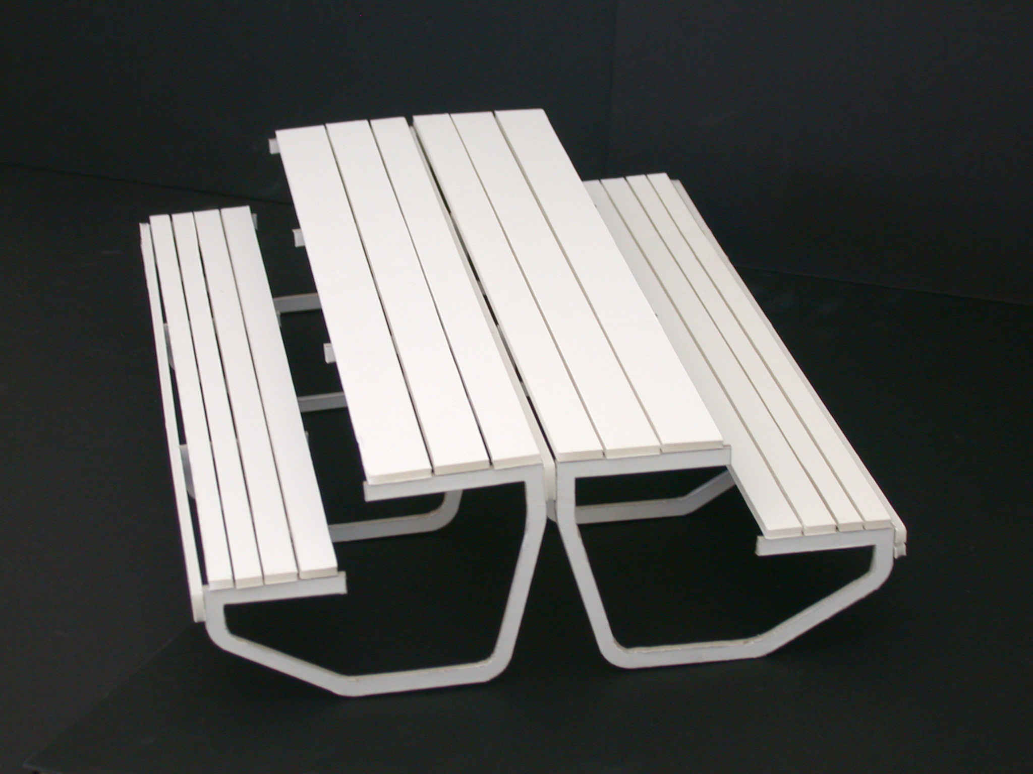 We have always been interested in the design of furniture and objects. It is especially interesting to design a table or chair to fit within a larger architectural project we are working on. These are examples of tables that we have designed for a variety of situations and clients. The "FTC dining table" was designed for our clients at the the Holly Vista House in Pasadena. The round "Saladang table" we designed for the restaurant Saladang Song. The picnic table is a prototype for a park and the "Multi-table" was for an office conference room.